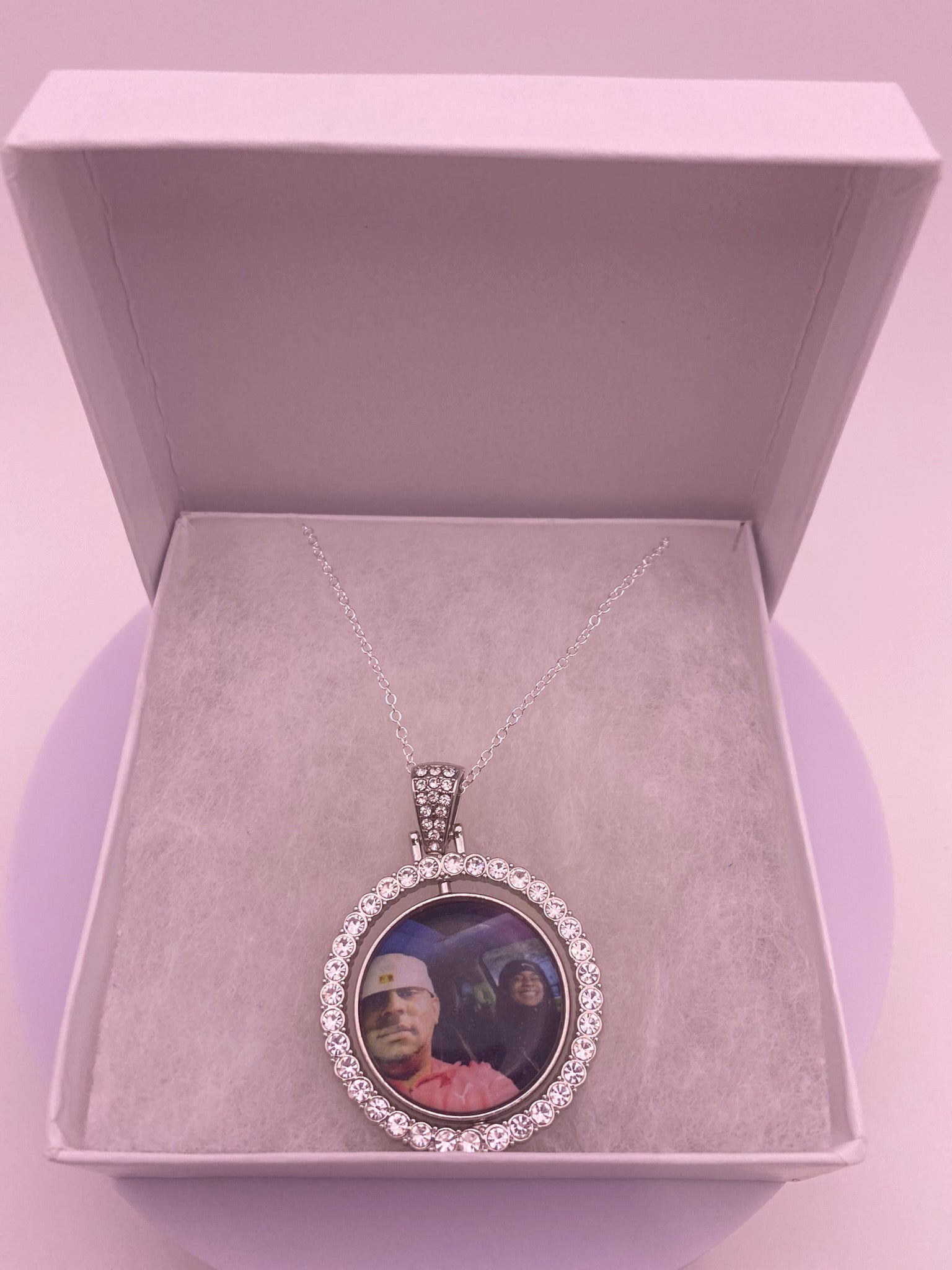 Double Sided Rhinestone Personalized Photo Pendant with Chain