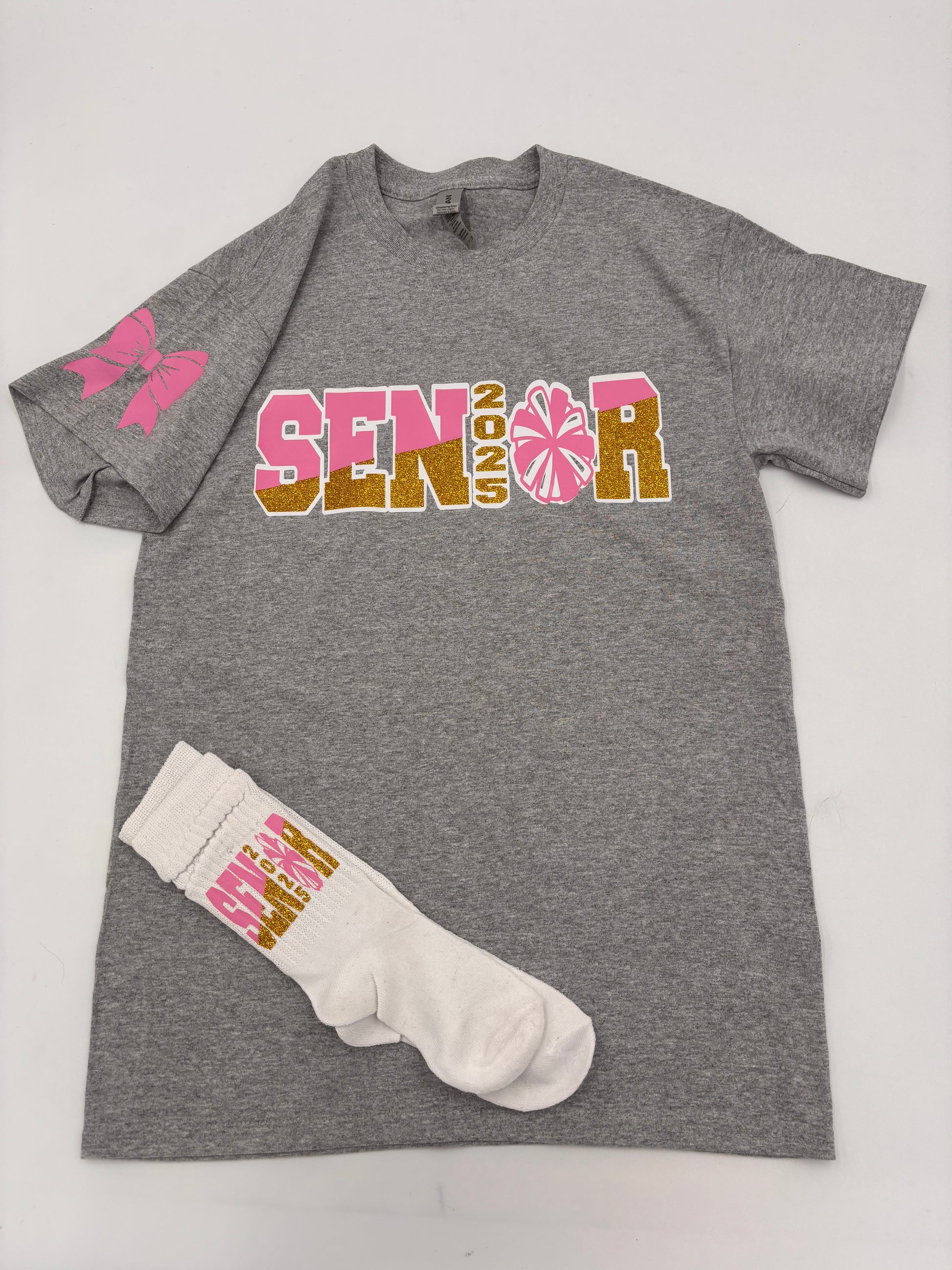 Say hello to the ultimate senior year keepsake! Our Cheerleading Senior T-Shirt (Socks not included) is more than just a tee; it's a memory you can wear. Here are some key features: